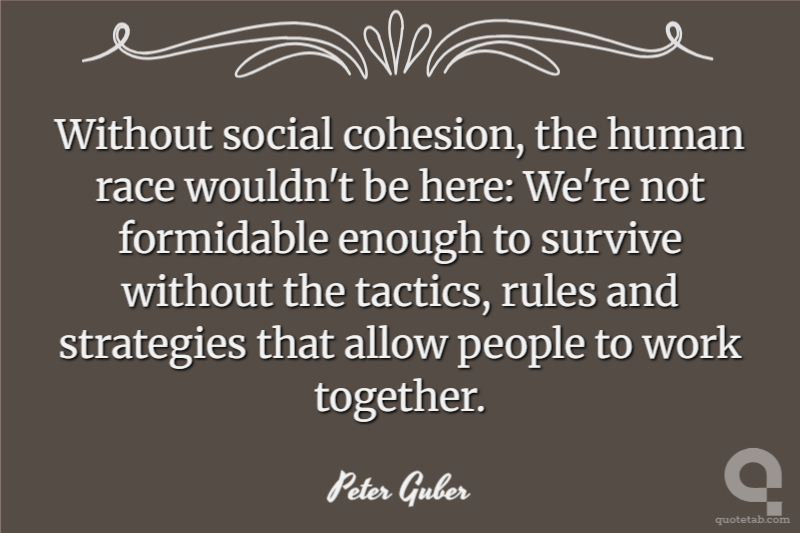 Without social cohesion, the human race wouldn't be here: We're not formidable enough to survive without the tactics, rules and strategies that allow people to work together.