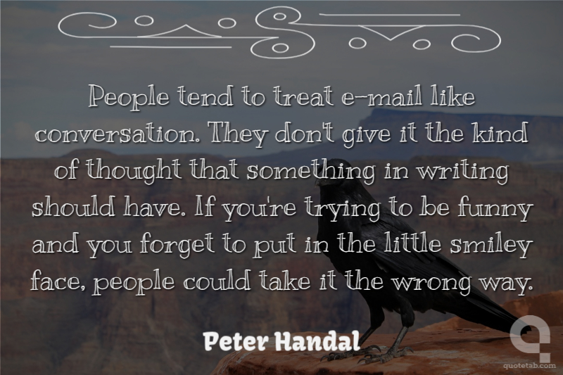 People tend to treat e-mail like conversation. They don't give it the kind of thought that something in writing should have. If you're trying to be funny and you forget to put in the little smiley face, people could take it the wrong way.