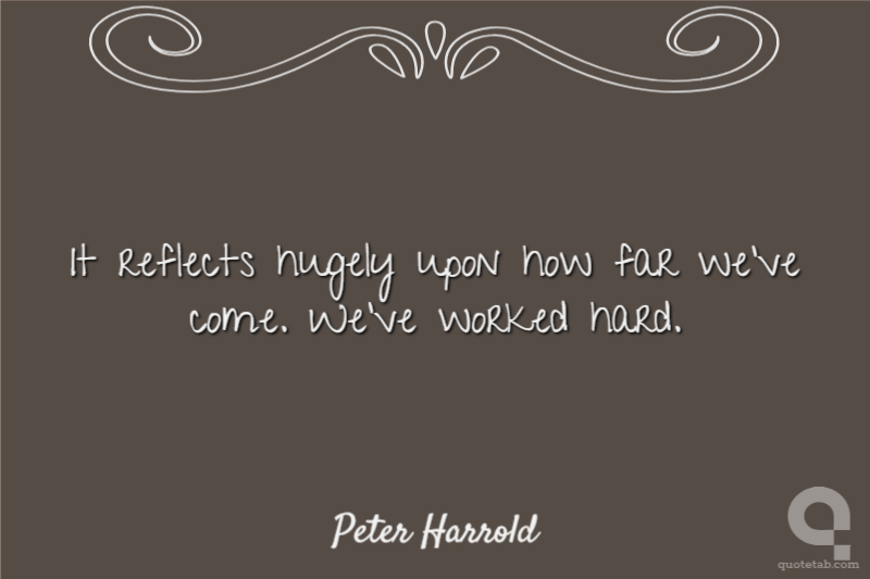 It reflects hugely upon how far we've come. We've worked hard.