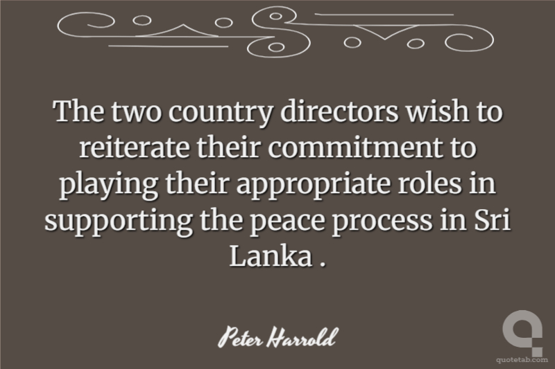 The two country directors wish to reiterate their commitment to playing their appropriate roles in supporting the peace process in Sri Lanka .