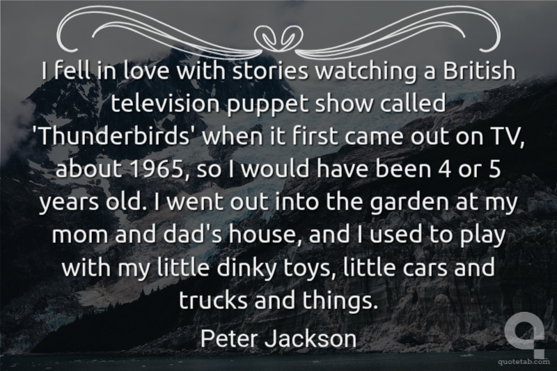 I fell in love with stories watching a British television puppet show called 'Thunderbirds' when it first came out on TV, about 1965, so I would have been 4 or 5 years old. I went out into the garden at my mom and dad's house, and I used to play with my little dinky toys, little cars and trucks and things.