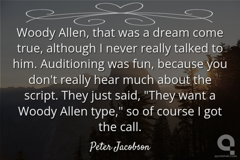 Woody Allen, that was a dream come true, although I never really talked to him. Auditioning was fun, because you don't really hear much about the script. They just said, "They want a Woody Allen type," so of course I got the call.