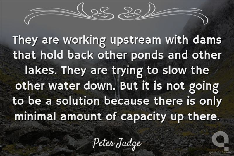 They are working upstream with dams that hold back other ponds and other lakes. They are trying to slow the other water down. But it is not going to be a solution because there is only minimal amount of capacity up there.