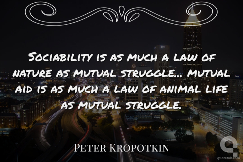 Sociability is as much a law of nature as mutual struggle... mutual aid is as much a law of animal life as mutual struggle.