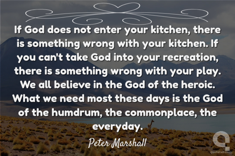 If God does not enter your kitchen, there is something wrong with your kitchen. If you can't take God into your recreation, there is something wrong with your play. We all believe in the God of the heroic. What we need most these days is the God of the humdrum, the commonplace, the everyday.