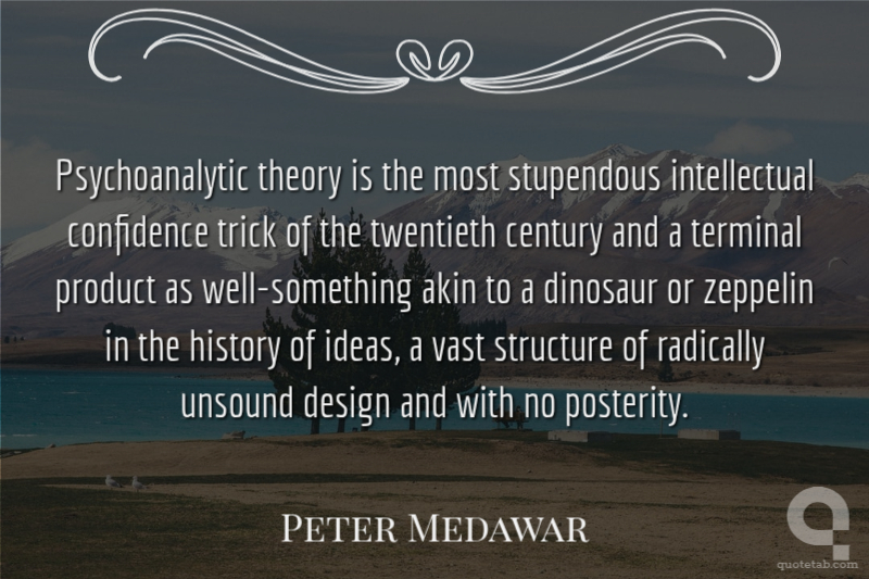 Psychoanalytic theory is the most stupendous intellectual confidence trick of the twentieth century and a terminal product as well-something akin to a dinosaur or zeppelin in the history of ideas, a vast structure of radically unsound design and with no posterity.