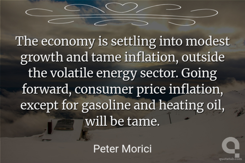 The economy is settling into modest growth and tame inflation, outside the volatile energy sector. Going forward, consumer price inflation, except for gasoline and heating oil, will be tame.