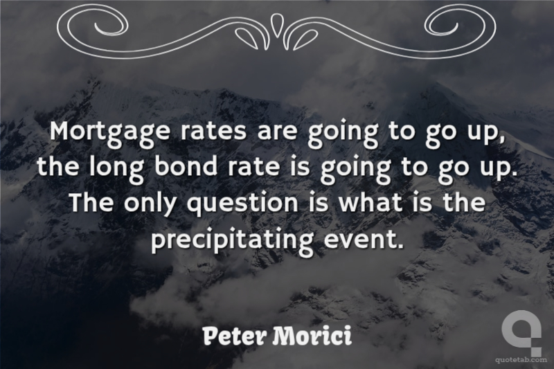 Mortgage rates are going to go up, the long bond rate is going to go up. The only question is what is the precipitating event.