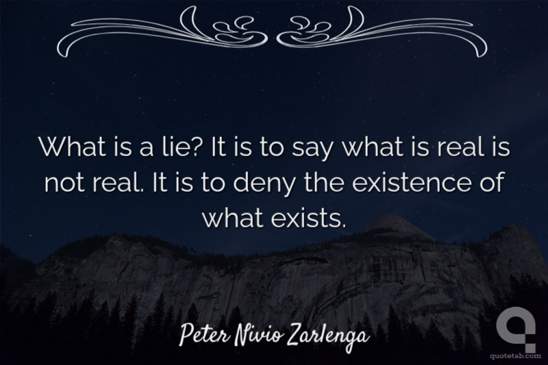 What is a lie? It is to say what is real is not real. It is to deny the existence of what exists.