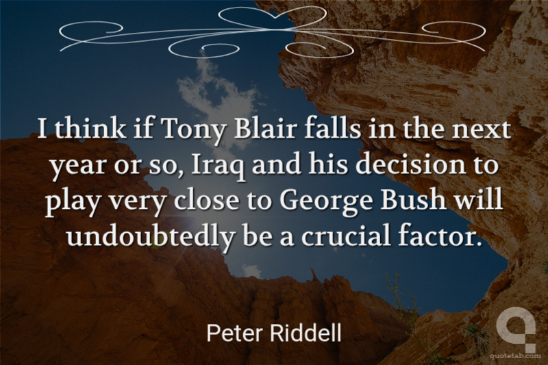I think if Tony Blair falls in the next year or so, Iraq and his decision to play very close to George Bush will undoubtedly be a crucial factor.