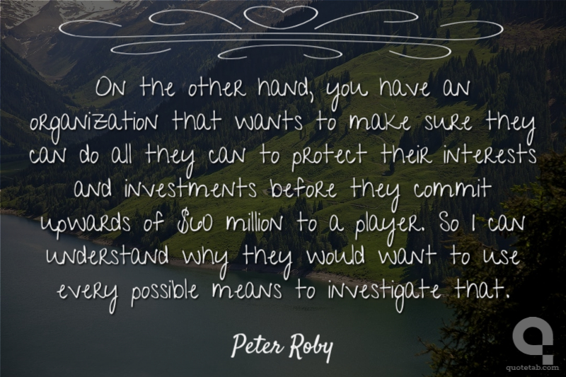 On the other hand, you have an organization that wants to make sure they can do all they can to protect their interests and investments before they commit upwards of $60 million to a player. So I can understand why they would want to use every possible means to investigate that.