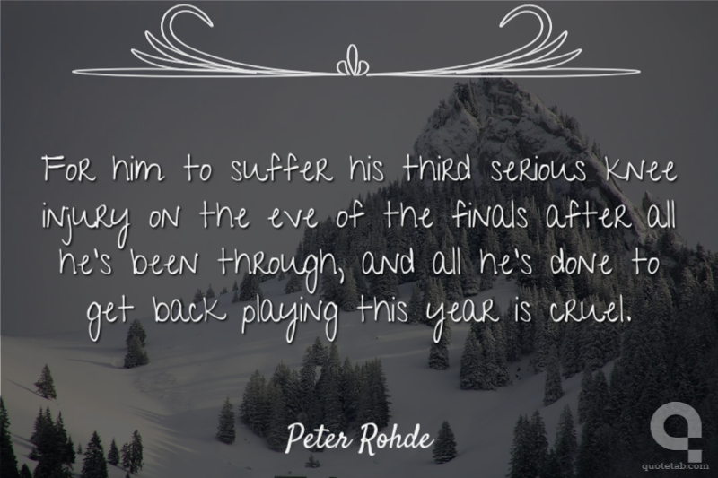For him to suffer his third serious knee injury on the eve of the finals after all he's been through, and all he's done to get back playing this year is cruel.