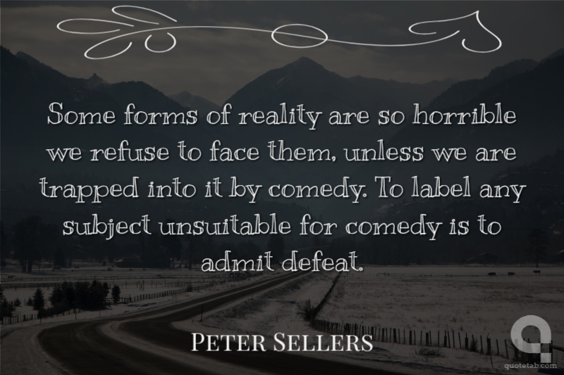 Some forms of reality are so horrible we refuse to face them, unless we are trapped into it by comedy. To label any subject unsuitable for comedy is to admit defeat.