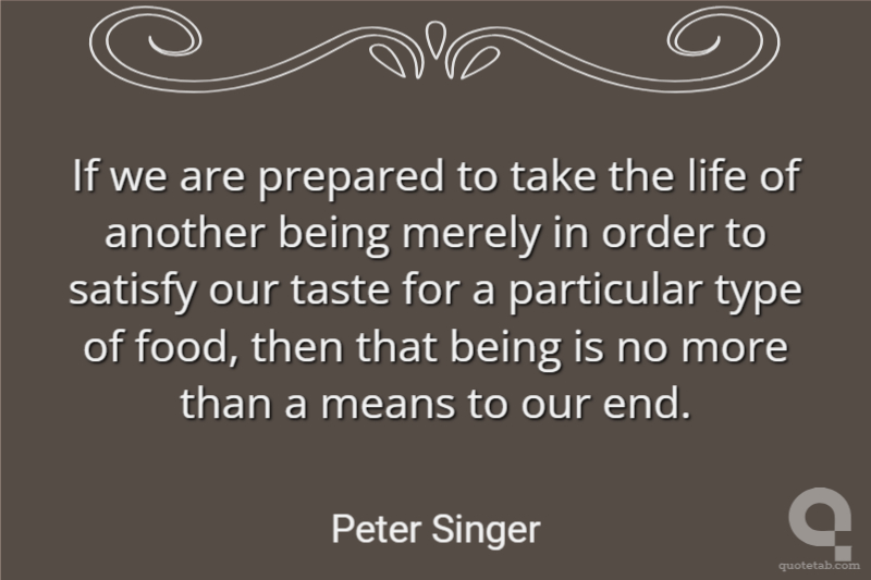 If we are prepared to take the life of another being merely in order to satisfy our taste for a particular type of food, then that being is no more than a means to our end.