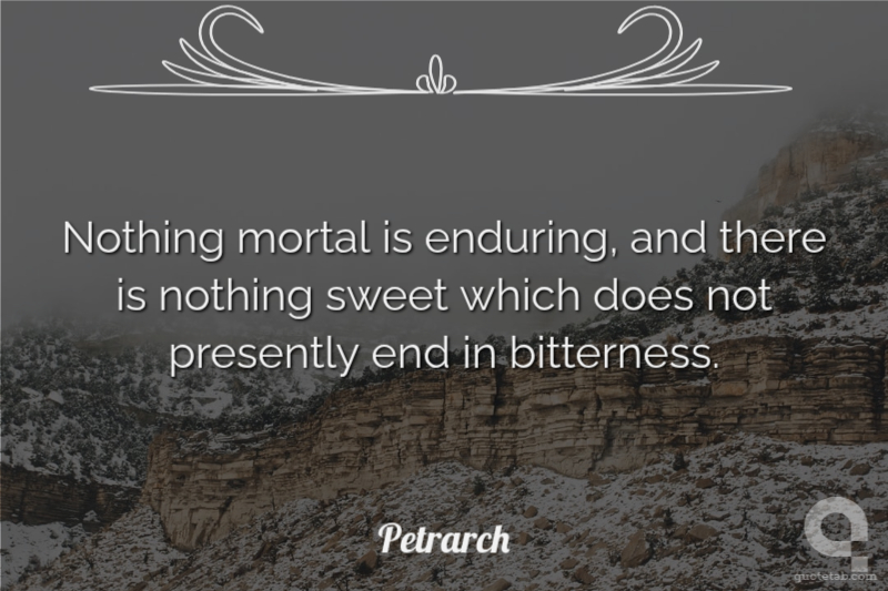 Nothing mortal is enduring, and there is nothing sweet which does not presently end in bitterness.