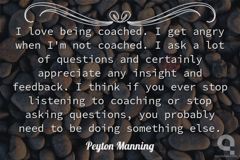 I love being coached. I get angry when I'm not coached. I ask a lot of questions and certainly appreciate any insight and feedback. I think if you ever stop listening to coaching or stop asking questions, you probably need to be doing something else.