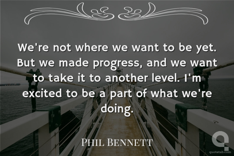 We're not where we want to be yet. But we made progress, and we want to take it to another level. I'm excited to be a part of what we're doing.