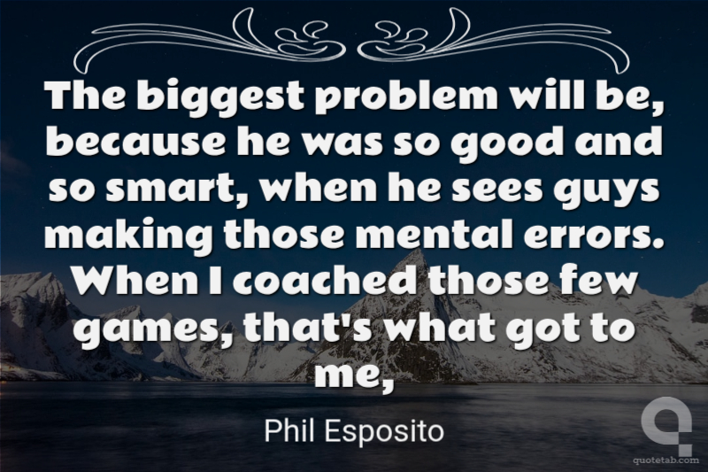 The biggest problem will be, because he was so good and so smart, when he sees guys making those mental errors. When I coached those few games, that's what got to me,