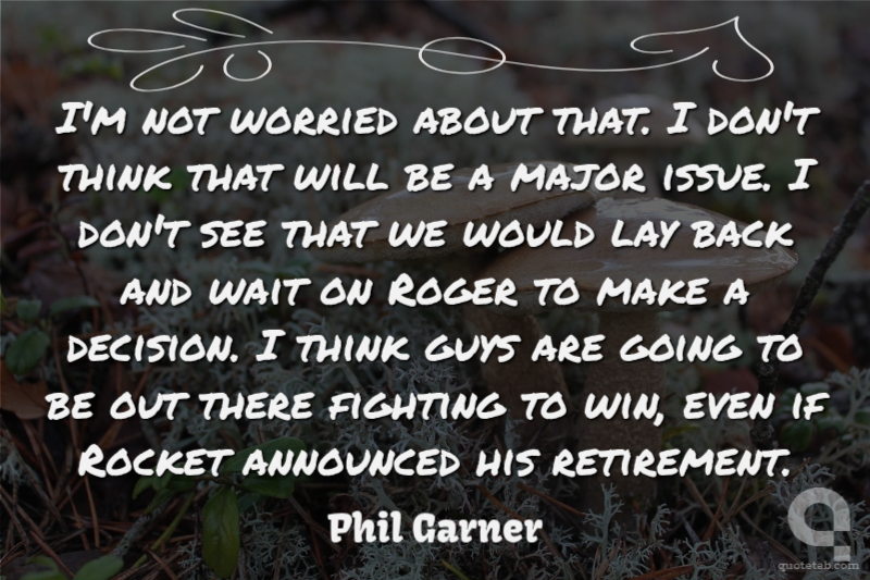 I'm not worried about that. I don't think that will be a major issue. I don't see that we would lay back and wait on Roger to make a decision. I think guys are going to be out there fighting to win, even if Rocket announced his retirement.