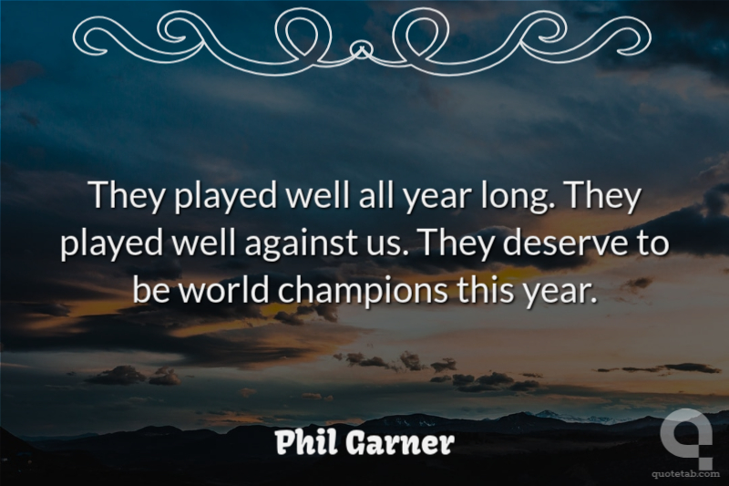 They played well all year long. They played well against us. They deserve to be world champions this year.