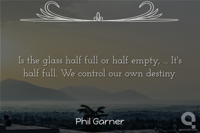 Is the glass half full or half empty, ... It's half full. We control our own destiny.
