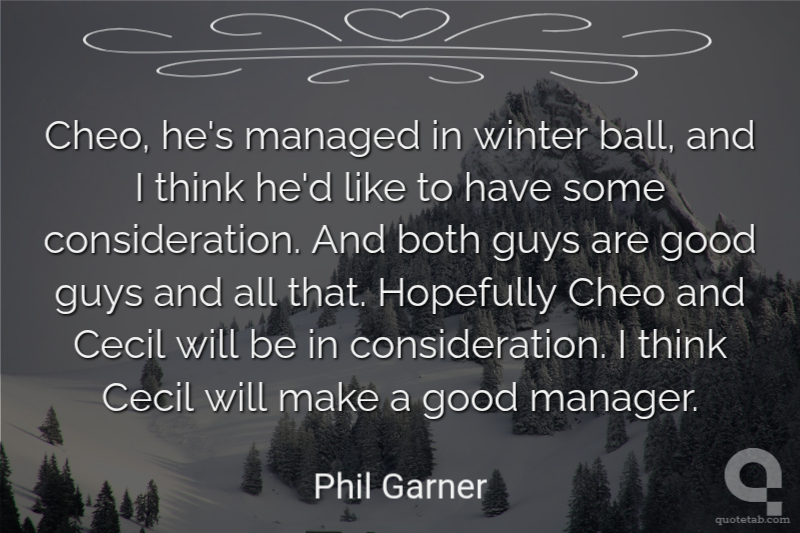 Cheo, he's managed in winter ball, and I think he'd like to have some consideration. And both guys are good guys and all that. Hopefully Cheo and Cecil will be in consideration. I think Cecil will make a good manager.