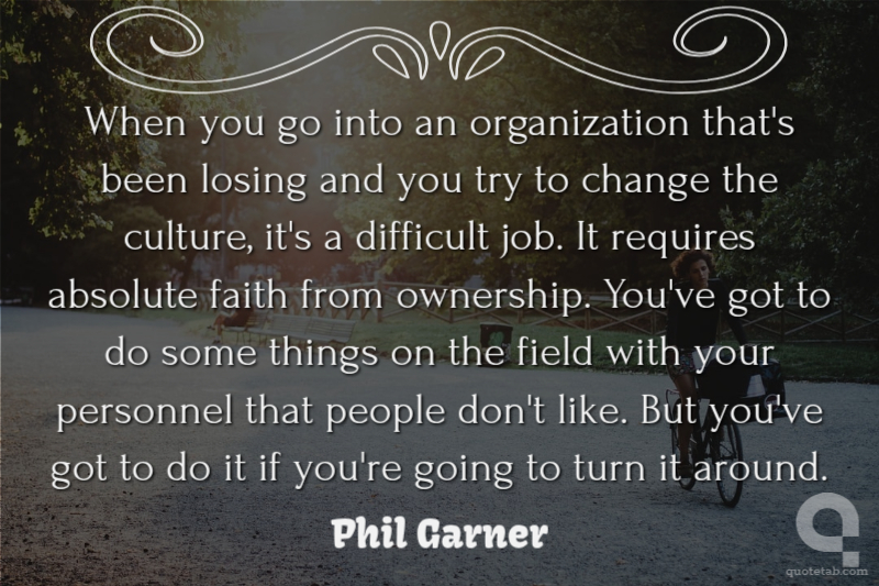 When you go into an organization that's been losing and you try to change the culture, it's a difficult job. It requires absolute faith from ownership. You've got to do some things on the field with your personnel that people don't like. But you've got to do it if you're going to turn it around.