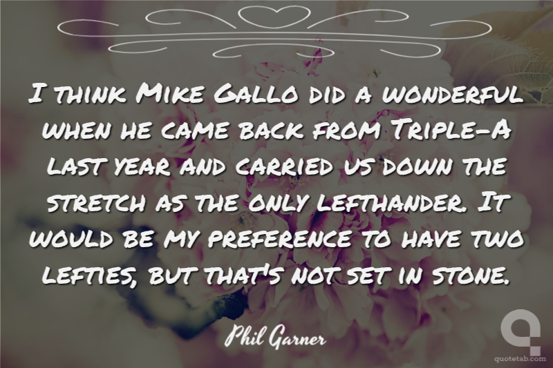 I think Mike Gallo did a wonderful when he came back from Triple-A last year and carried us down the stretch as the only lefthander. It would be my preference to have two lefties, but that's not set in stone.