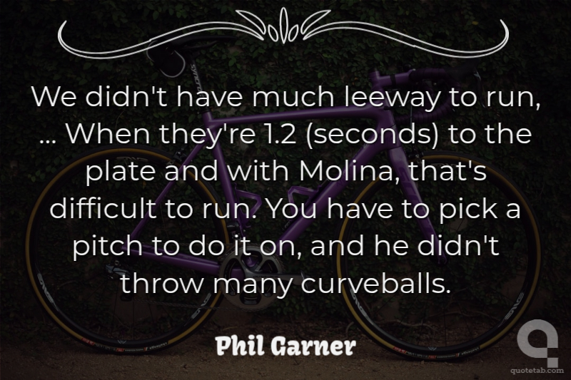 We didn't have much leeway to run, ... When they're 1.2 (seconds) to the plate and with Molina, that's difficult to run. You have to pick a pitch to do it on, and he didn't throw many curveballs.