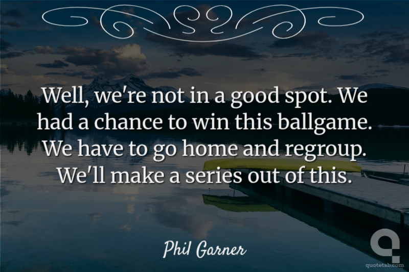 Well, we're not in a good spot, ... We had a chance to win this ballgame. We have to go home and regroup. We'll make a series out of this.
