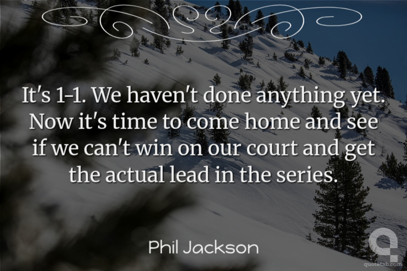 It's 1-1. We haven't done anything yet. Now it's time to come home and see if we can't win on our court and get the actual lead in the series.