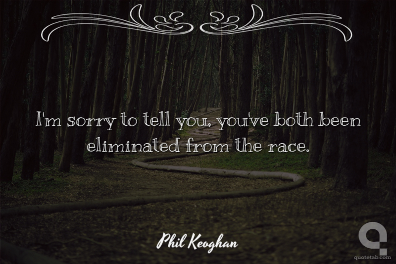 I'm sorry to tell you, you've both been eliminated from the race.