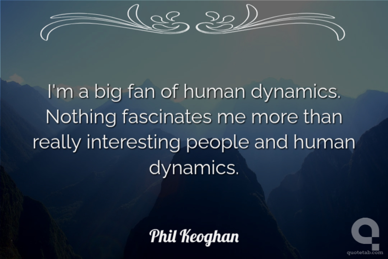 I'm a big fan of human dynamics. Nothing fascinates me more than really interesting people and human dynamics.