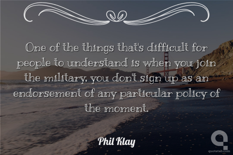 One of the things that's difficult for people to understand is when you join the military, you don't sign up as an endorsement of any particular policy of the moment.