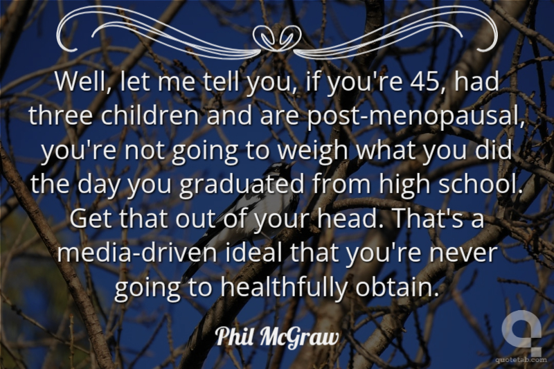 Well, let me tell you, if you're 45, had three children and are post-menopausal, you're not going to weigh what you did the day you graduated from high school. Get that out of your head. That's a media-driven ideal that you're never going to healthfully obtain.