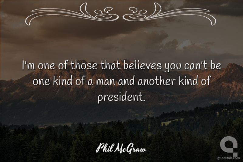 I'm one of those that believes you can't be one kind of a man and another kind of president.