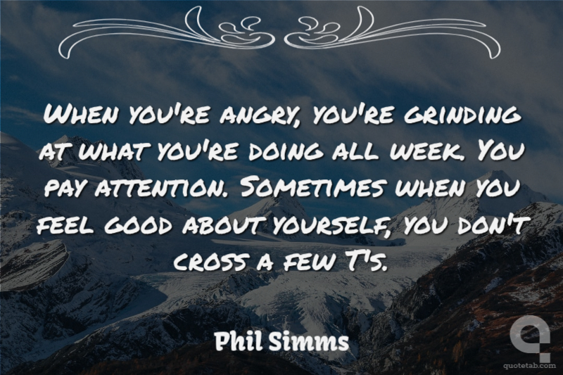 When you're angry, you're grinding at what you're doing all week. You pay attention. Sometimes when you feel good about yourself, you don't cross a few T's.