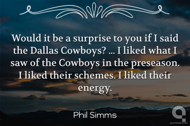 Would it be a surprise to you if I said the Dallas Cowboys? ... I liked what I saw of the Cowboys in the preseason. I liked their schemes. I liked their energy.