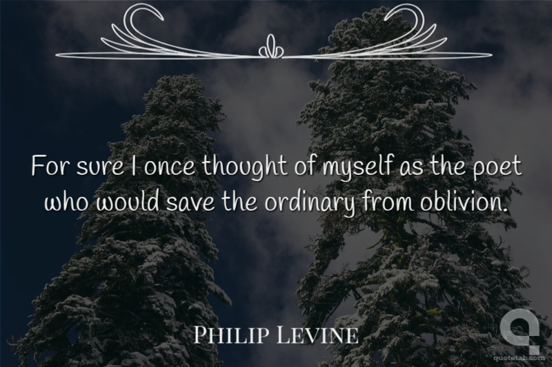 For sure I once thought of myself as the poet who would save the ordinary from oblivion.