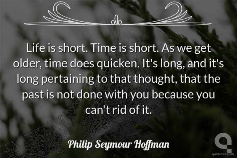Life is short. Time is short. As we get older, time does quicken. It's long, and it's long pertaining to that thought, that the past is not done with you because you can't rid of it.