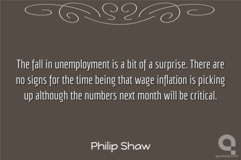 The fall in unemployment is a bit of a surprise. There are no signs for the time being that wage inflation is picking up although the numbers next month will be critical.