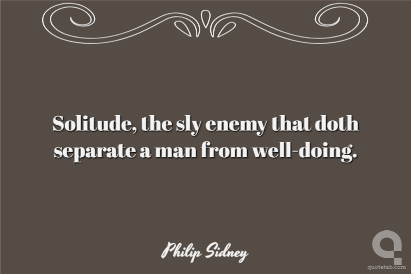 Solitude, the sly enemy that doth separate a man from well-doing.