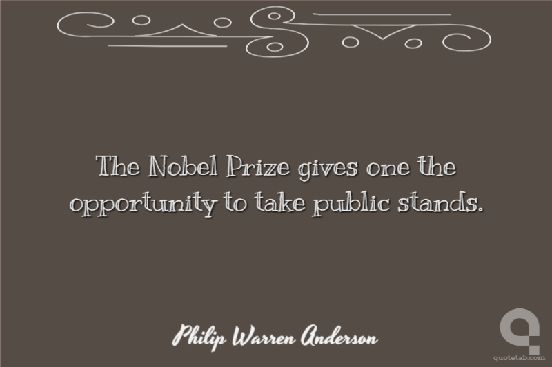 The Nobel Prize gives one the opportunity to take public stands.