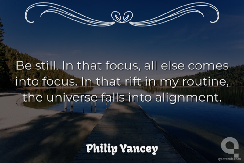 Be still. In that focus, all else comes into focus. In that rift in my routine, the universe falls into alignment.