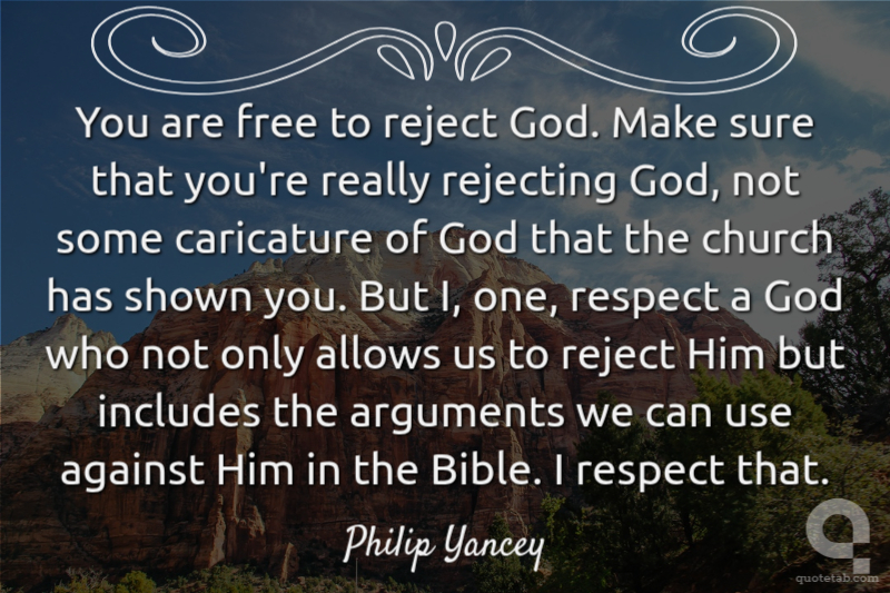 You are free to reject God. Make sure that you're really rejecting God, not some caricature of God that the church has shown you. But I, one, respect a God who not only allows us to reject Him but includes the arguments we can use against Him in the Bible. I respect that.