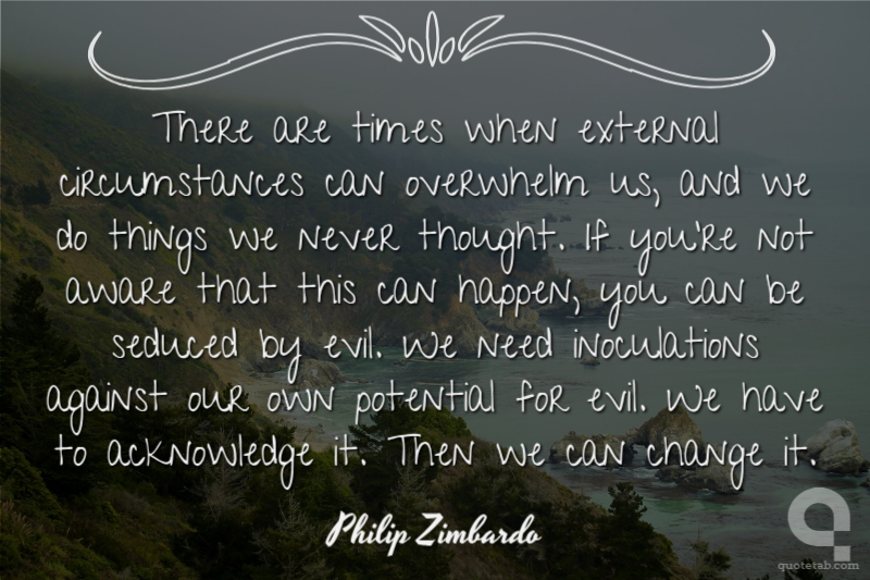 There are times when external circumstances can overwhelm us, and we do things we never thought. If you're not aware that this can happen, you can be seduced by evil. We need inoculations against our own potential for evil. We have to acknowledge it. Then we can change it.