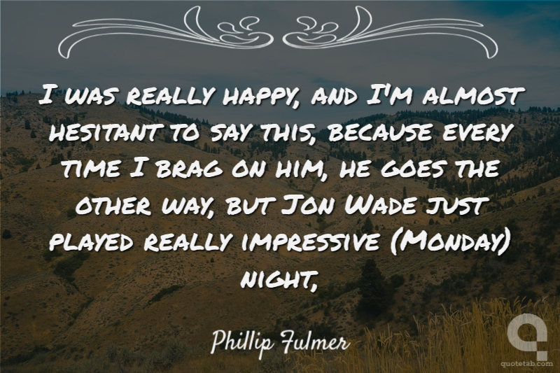 I was really happy, and I'm almost hesitant to say this, because every time I brag on him, he goes the other way, but Jon Wade just played really impressive (Monday) night,