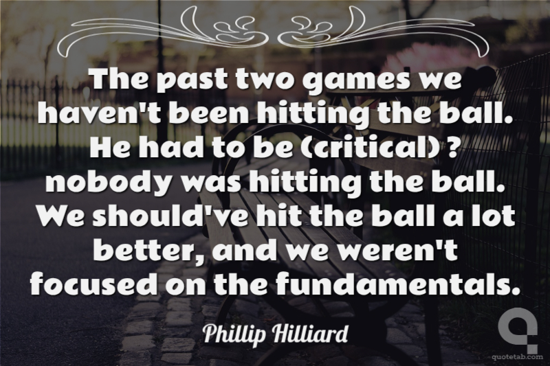 The past two games we haven't been hitting the ball. He had to be (critical) ? nobody was hitting the ball. We should've hit the ball a lot better, and we weren't focused on the fundamentals.
