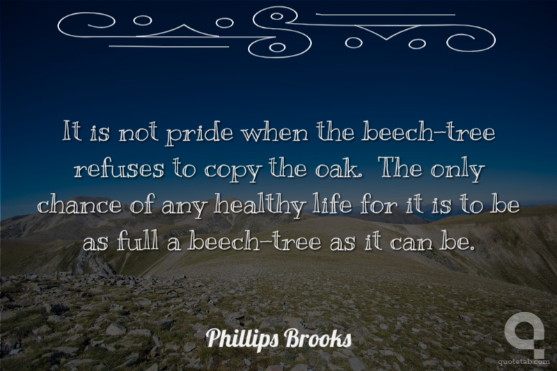 It is not pride when the beech-tree refuses to copy the oak. The only chance of any healthy life for it is to be as full a beech-tree as it can be.