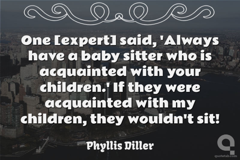 One [expert] said, 'Always have a baby sitter who is acquainted with your children.' If they were acquainted with my children, they wouldn't sit!